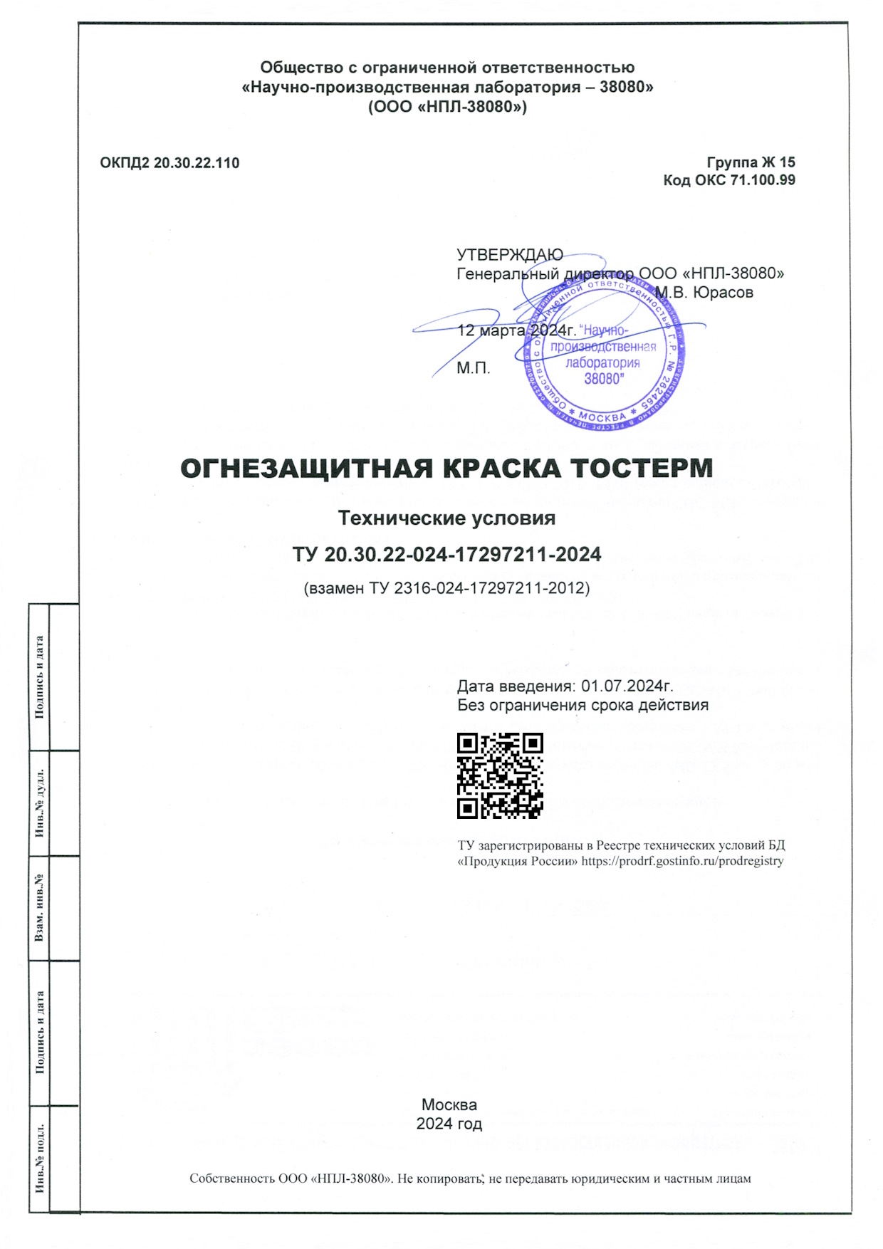 | Подтверждающий документ | ТУ 20.30.22-024-17297211-2024 |